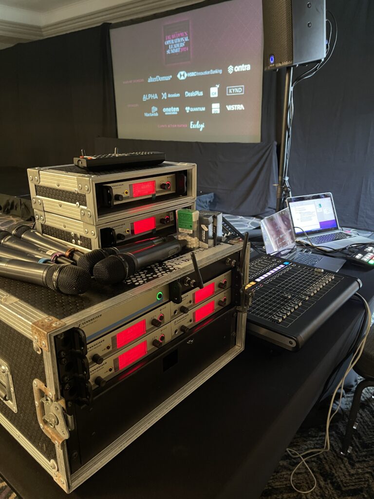 We also supported a corporate AGM in Crawley, providing a broadcast-quality setup including multiple wireless microphones, confidence monitors and full event recording.